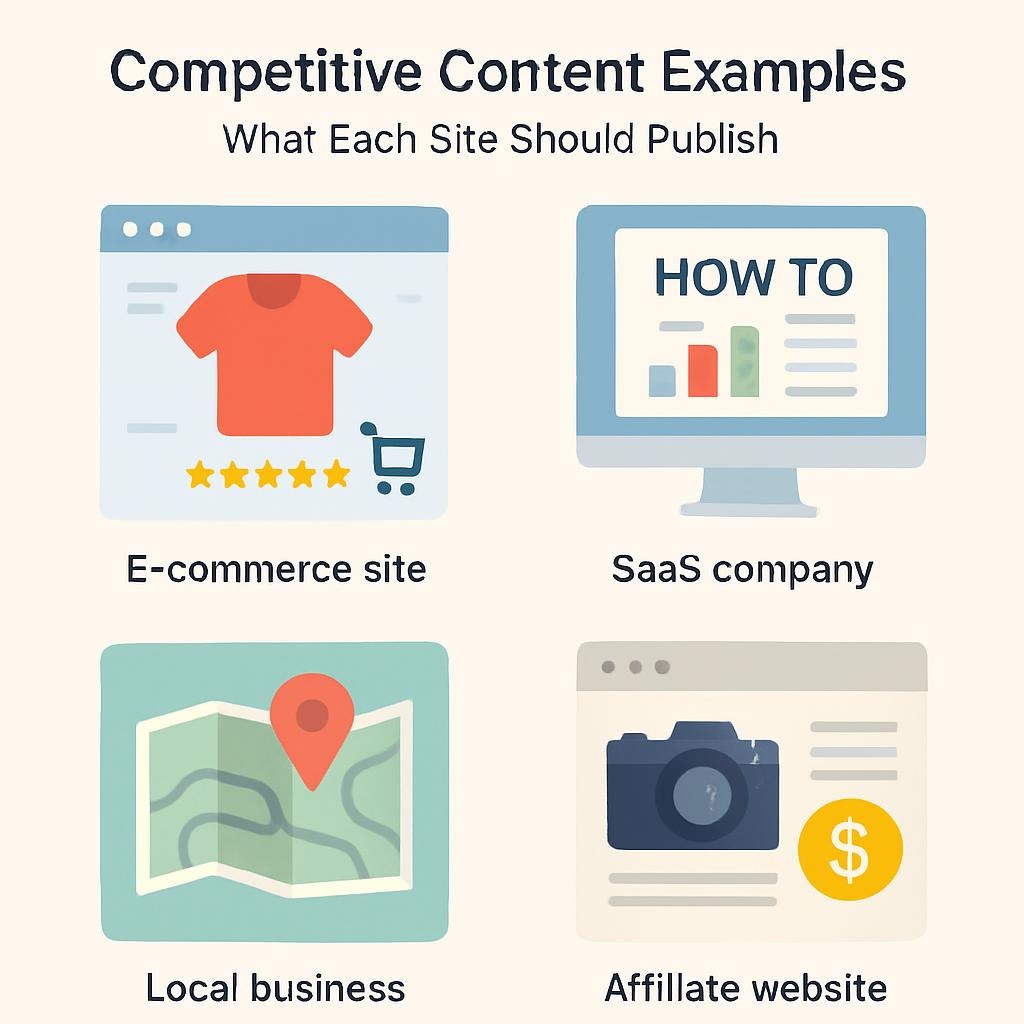 Here’s a side-by-side creative content framework to position each site in the competitive landscape: